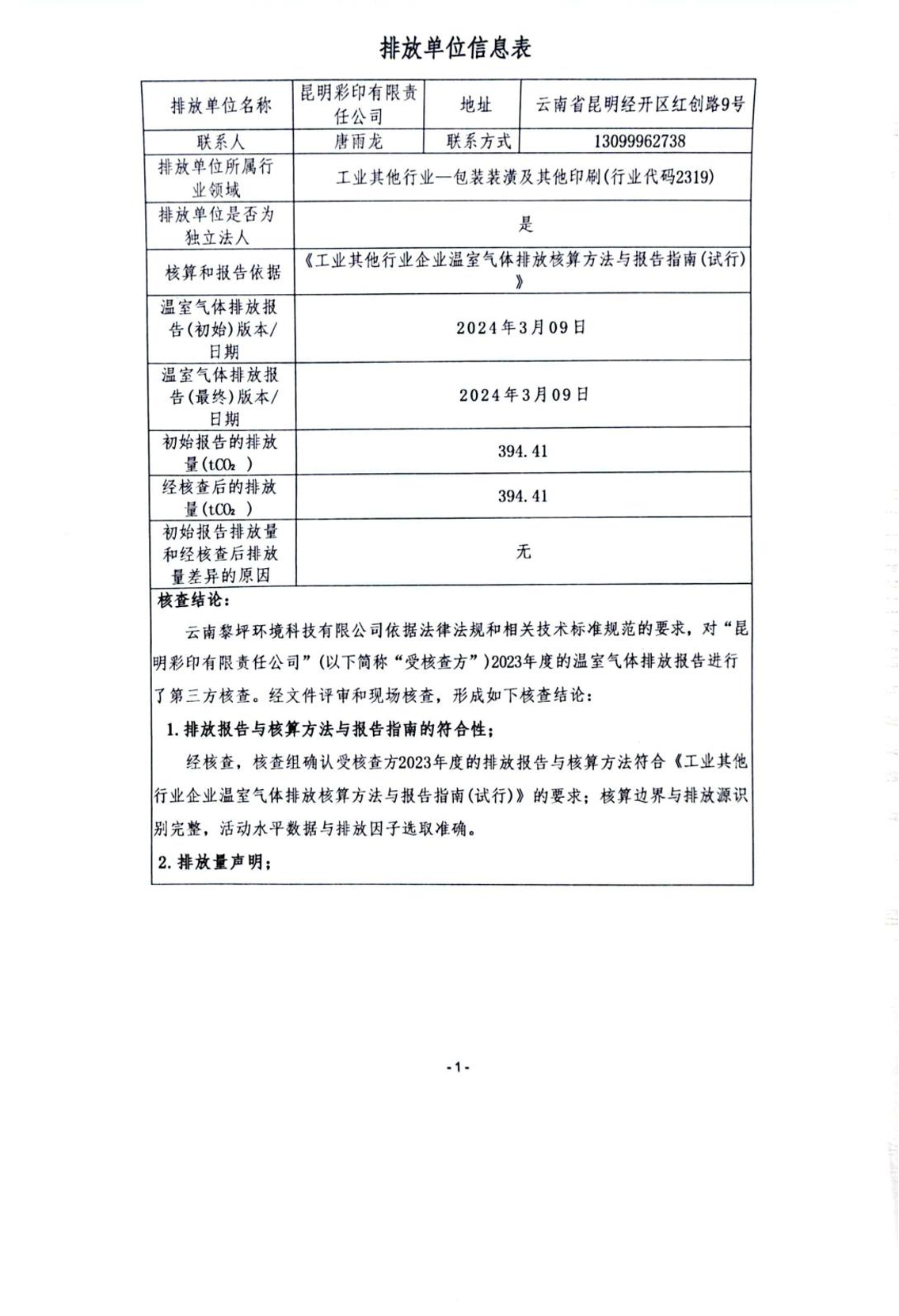 2024年度温室气体排放核查报告