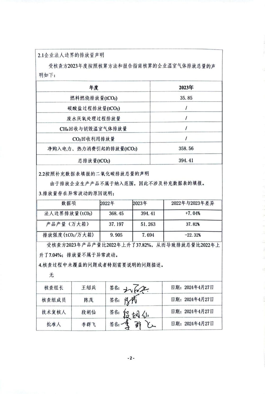 2023年度温室气体排放核查报告